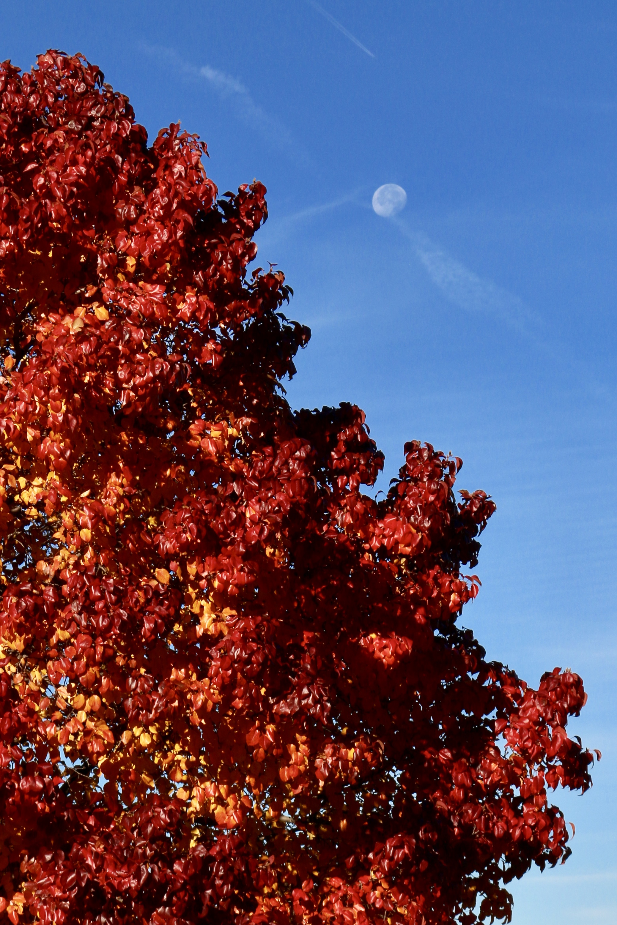 The two pictures I’m posting tonight are of some trees and the moon. It was so pretty this morning, and it’s warm again, although it’s going to get cold pretty soon.