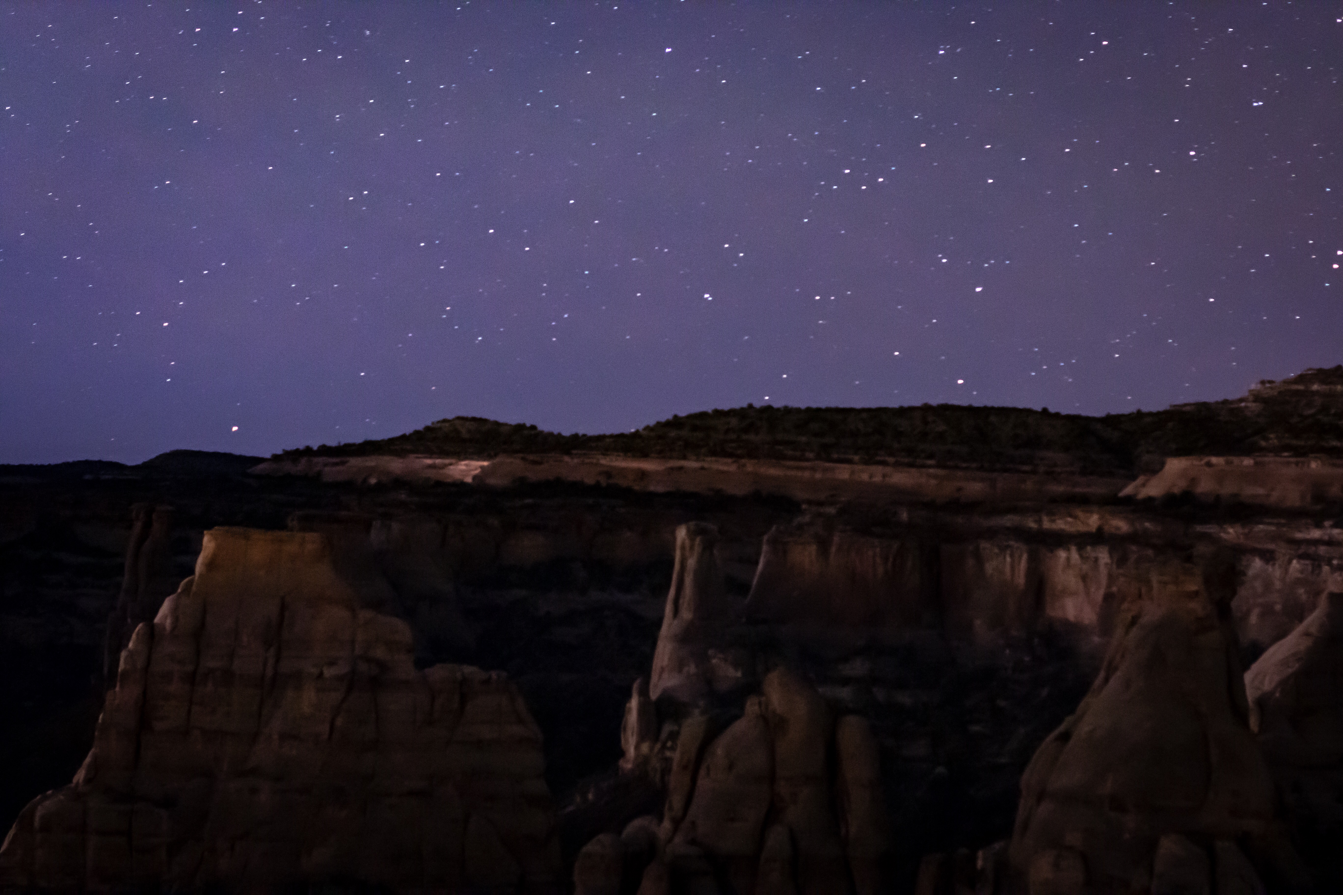 I took these pictures 11/8/18 on the Colorado National Monument. It was a class put on by the Monument and taught by Christopher K. Eaton. We hiked down a little way to get a good spot to photograph and then he helped us, with our different cameras, to take these night pictures. I had a blast and learned a lot. My feet got really cold, though. I did wear plenty of clothes and I had hand warmers, but my feet were what finally did me in. I can’t wait to do this again. I hope I can find someone with the same interest; I really don’t want to be out there alone at night. I’m not as brave (or foolhardy) as I once was.