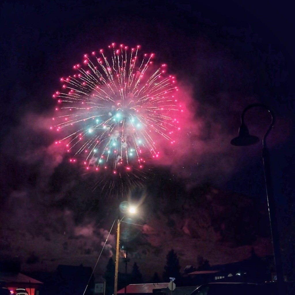 The beginning of July was full of camping and friends. In Silverton, Colorado, I camped with good friends, enjoyed the annual Independence Day parade in town, and watched fireworks that night. The cool thing about their fireworks (and the ones in Ouray), is the deep, but narrow, canyon that makes the BOOM of all the fireworks reverberate against the canyon walls. What great sound effects that add to the visual thrill of the fireworks! My group, unfortunately, was seated behind a new street lamp, so the pictures aren’t as nice as they could be.
