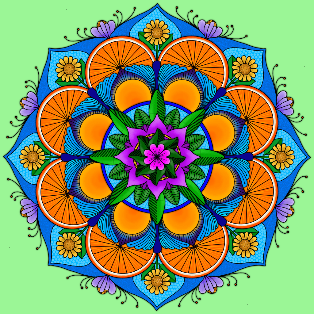 I have busied myself with the creation of mandalas the last couple of weeks, using my iPad, Apple Pencil Gen 2, and Procreate for iPad. I found out that Procreate has a function for creating mandalas whereby drawing in one area will repeat in all other areas, depending on the number of divisions in your template. Over the last two weeks I’ve learned a lot of helpful techniques, too. Mandala samples, from simple to a bit more detailed, are featured below. Thanks for stopping in, and have a great week!