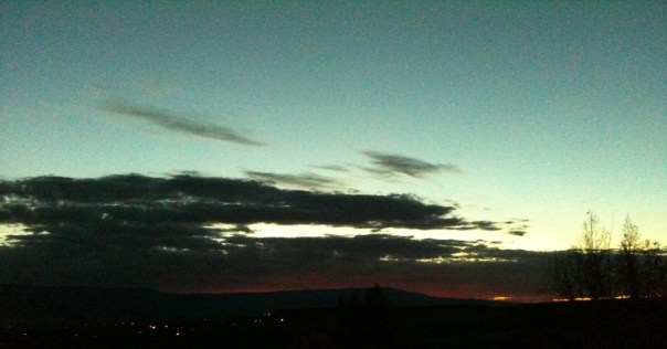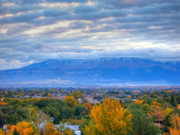 It’s October 24, and this morning I woke up to see the first visible snow on the Grand Mesa. I’m not looking forward to being cold, but I do love a change in weather. This is the picture I took. I fiddled around with Photomatix Pro and Photoshop and hopefully brought out more color and contrast than the original picture showed.