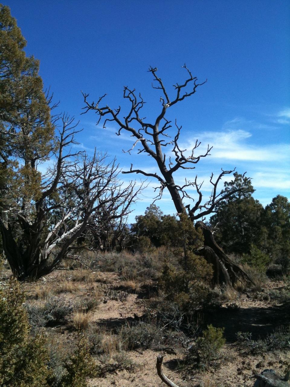 Well, this has been fun, and it all started with a hike on the Colorado National Monument yesterday. Now, up there are some old, gnarly, very interestingly bent trees!